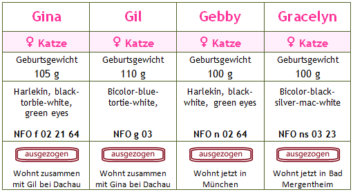 Rut: NFO f 22 - black-torbie-classic Mohrle: NFO n 09 - Schwarz-Weiss