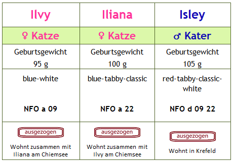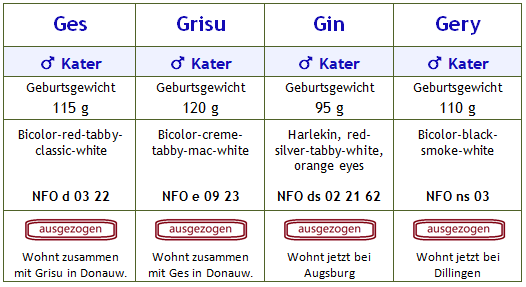 Enya: NFO gs 01 21 - Van, Blue-Silber-Torbie Mohrle: NFO n 09 - Schwarz-Weiss