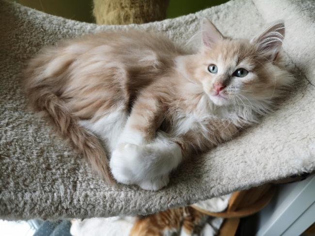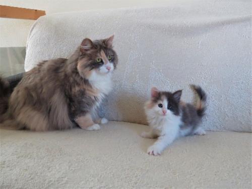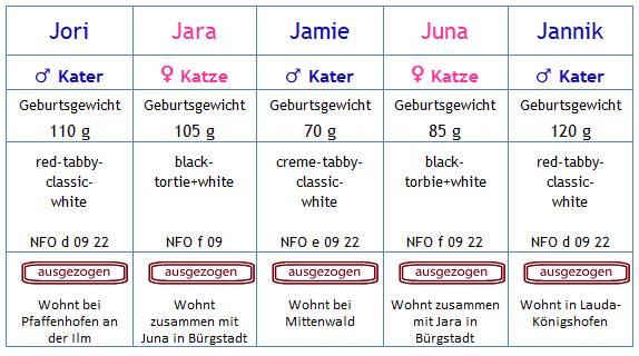 Rut: NFO f 22 - black-torbie-classic (trägt Verdünnung) Cremino: NFO e 03 22 - Creme-classic mit Weiß